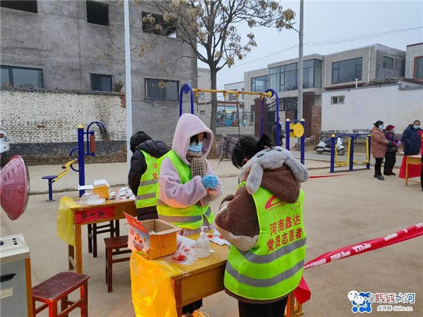 1月8日,安陽市突遭奧密克戎突襲,河南鑫達(dá)公司黨支部迅速組織56名黨員、入黨積極分子、青年骨干人員組成了7個抗疫志愿服務(wù)隊,于第 一時間分赴到高莊鎮(zhèn)工業(yè)園區(qū)藍(lán)天產(chǎn)業(yè)園臨街采集點和智能園區(qū)采集點、高莊鎮(zhèn)東小寒村、辛莊村、開信村、西小寒村的核酸測試點,服務(wù)抗疫,奉獻(xiàn)愛心,志愿出手,截止12日共計采集人員3600余人。